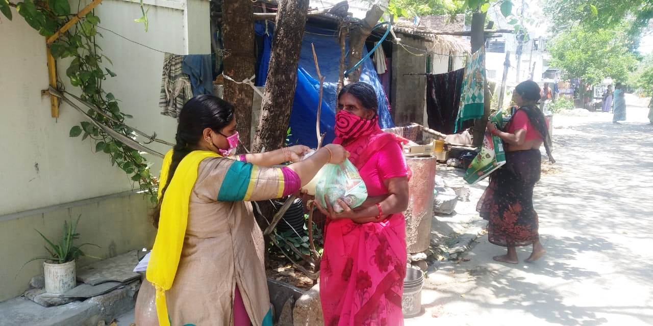 Distribution of Dry Ration in Nalla Cheruvu and Mangaldas nagar settlements by Ayesha and Baji to families of FSW and PLHIV