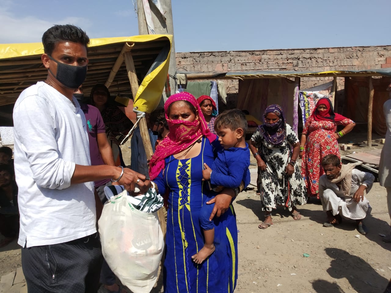Food distribution in Nagfani settlement following social distancing